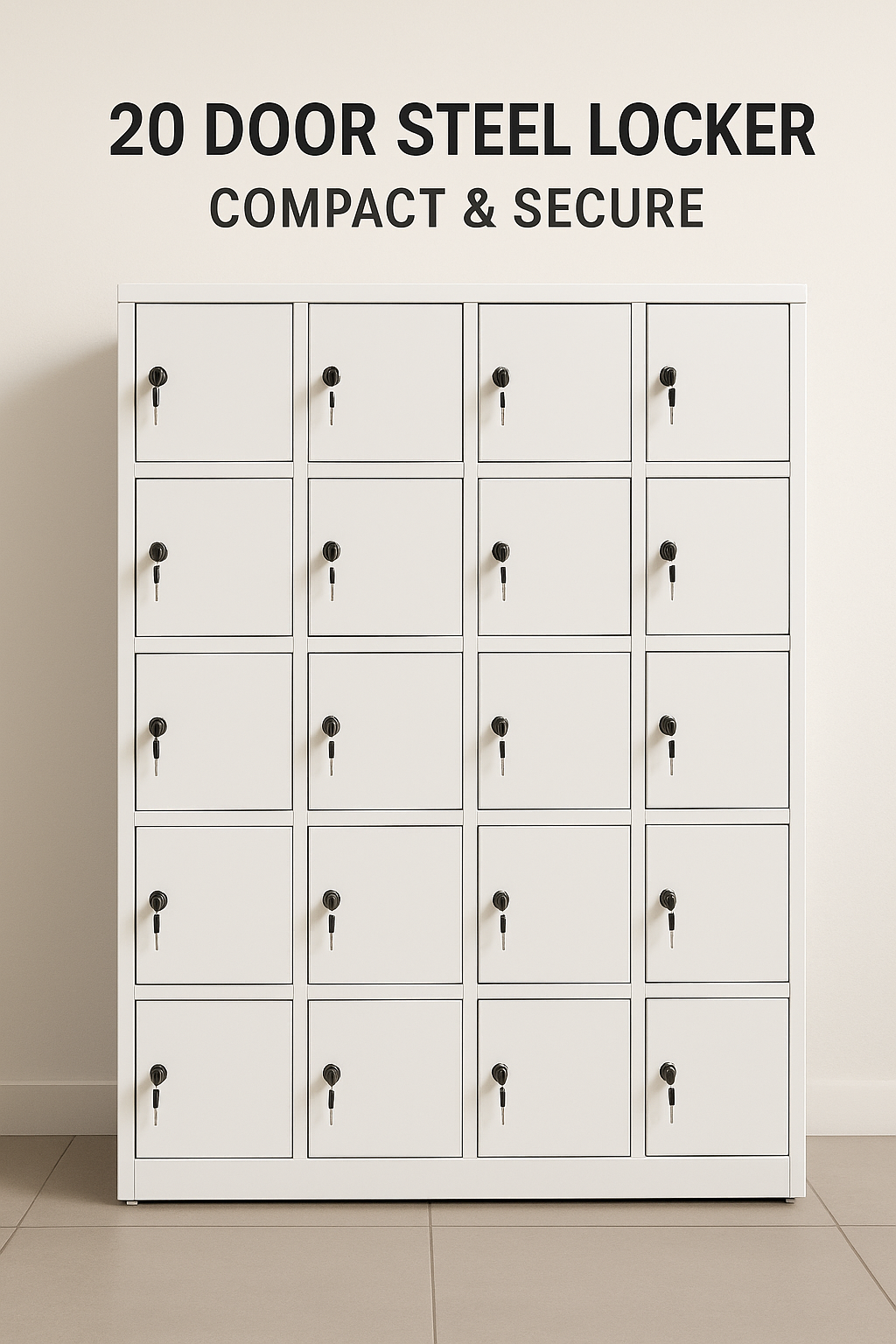 The 20 Door Steel Locker is a high-density storage solution engineered to provide maximum utility in a “compact & secure” footprint. Arranged in a 4×5 grid, this unit offers twenty individual compartments, making it the premier choice for large-scale facilities that require organized, personal storage for a significant number of users while maintaining a sleek, professional appearance.