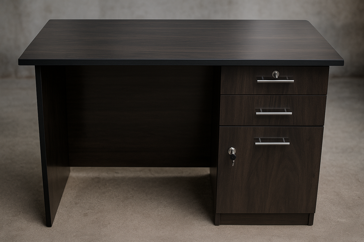 This contemporary executive office desk (48X24 office table) provides a streamlined, professional workspace designed for maximum efficiency in compact environments. It features a sophisticated monochromatic dark espresso wood-grain finish, offering a more modern and serious aesthetic compared to the lighter “Spider” model.