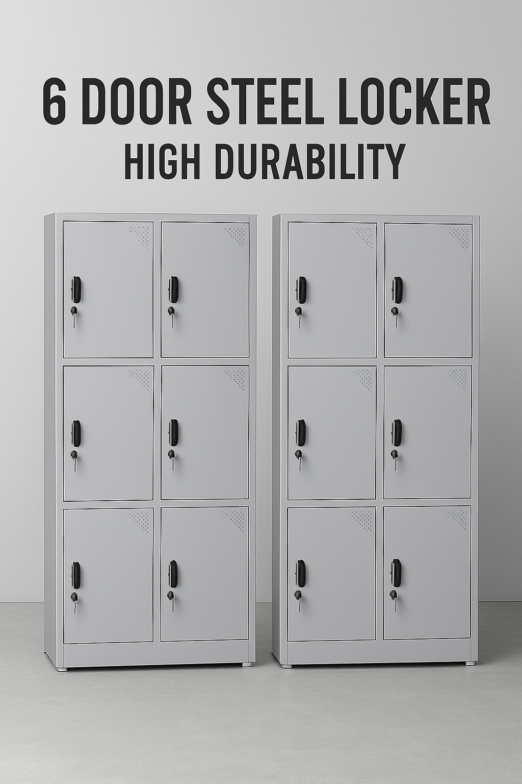 This 6-door steel locker is a robust and space-efficient storage solution designed for environments that require secure individual compartments. Constructed from high-quality steel, it offers high durability and resistance to daily wear and tear. Each locker door is fitted with a reliable locking mechanism to ensure safety and privacy, while the ventilated panels support proper airflow. With multiple compartments arranged vertically, this locker maximizes storage capacity without occupying excessive floor space, making it ideal for offices, factories, schools, gyms, and staff facilities.
