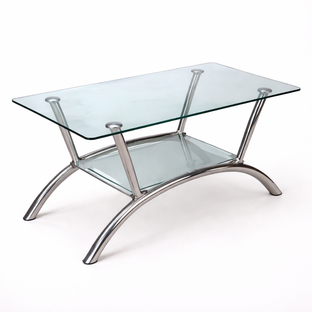 Polished Chrome Framework: The high-shine metallic base is resistant to wear and provides a brilliant contrast to the clear tempered glass.