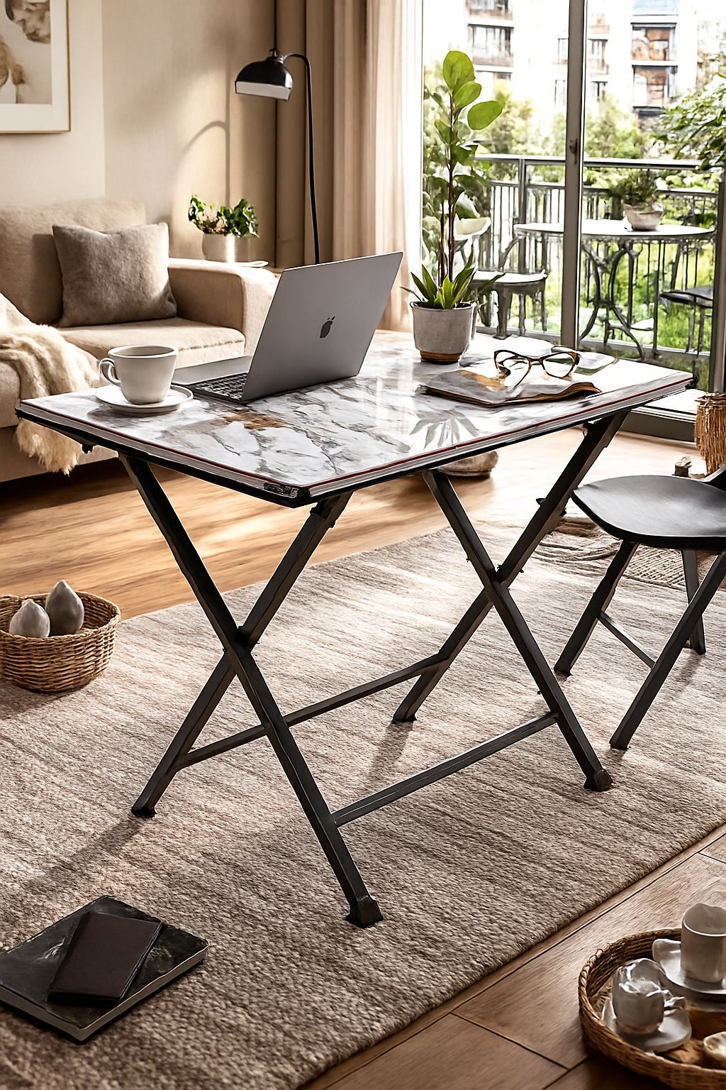 Space-Saving Functionality: Notice the X-frame folding legs. This is ideal for smaller apartments or multi-purpose rooms where you might need to tuck the desk away to clear floor space.